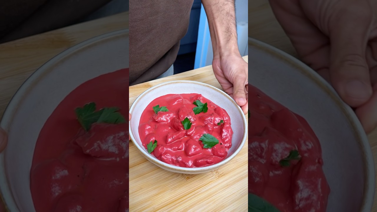 Pink Chicken Curry ✨ A vibrant twist on butter chicken – creamy, spicy, and naturally pink from beetroot! 💖🍗 Ingredients: • 1 kg boneless chicken (cut small) • 1 tsp ginger garlic paste • 1 tsp red chilli powder • ½ tsp turmeric • ½ tsp garam masala • Salt to taste • Dash of vinegar & lemon juice • Crushed black pepper • 1 tbsp butter • 1 onion (finely chopped) • 1 tbsp ginger garlic paste • 1 cup grated beetroot • 2 tsp red chilli powder • 1 tsp garam masala • 1 tsp coriander powder • 2 tbsp tomato purée • 1½ cup water • 2 tbsp butter • 300 ml single cream • Fresh coriander & kasuri methi for garnish Method: 1. Marinate chicken with spices, vinegar, lemon juice, and pepper. 2. Sear in butter until charred. Remove and set aside. 3. In the same pan, sauté onions till golden. Add ginger garlic paste and beetroot. Cook covered for 10 mins. 4. Add spices + tomato purée. Sauté well. 5. Blend with water into a smooth sauce. 6. In a pan, melt butter, pour in the sauce + cream. Simmer for 10 mins. 7. Add chicken, simmer again till rich and creamy. 8. Garnish with kasuri methi & chopped coriander. 🎉 Serve with naan, rice, or however you love it! Tag your